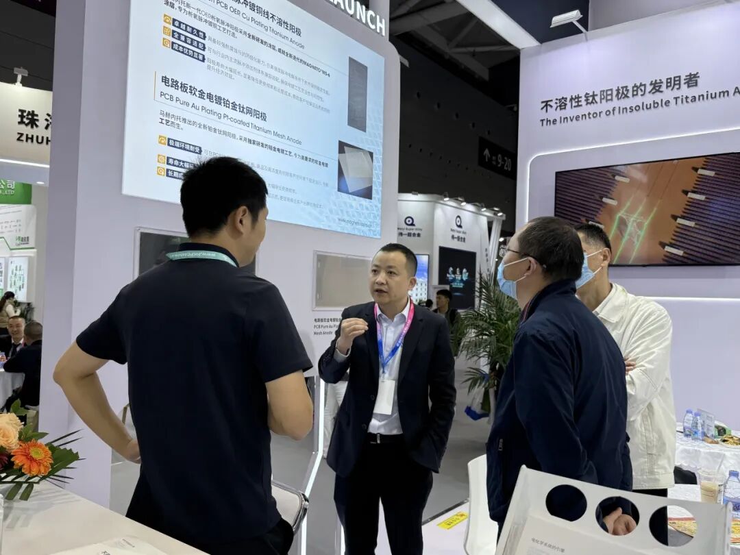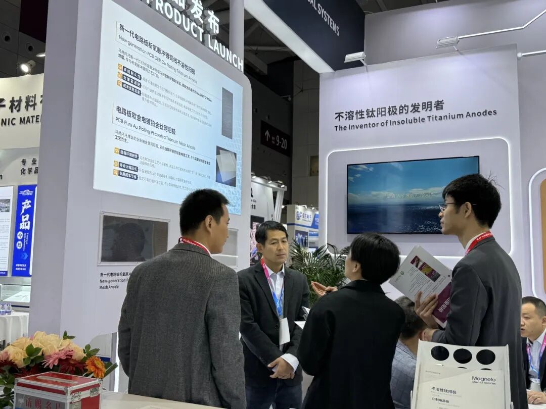 展会期间,马赫内托展台人气高涨。马赫内托聚焦PCB电镀、电解铜箔、通用五金电镀等领域,展示了多款性能卓越的钛阳极产品,更有专业的技术及商务团队与来访企业进行面对面洽谈,分享阳极前沿技术成果与应用实践经验。